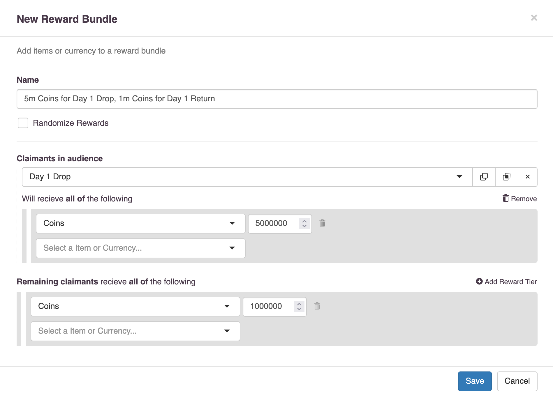 By using this tiered reward feature, you ensure you’re always sending an appropriate reward amount based on the player’s behavior and your goals. Check out our full guide on reward tiers for more details.